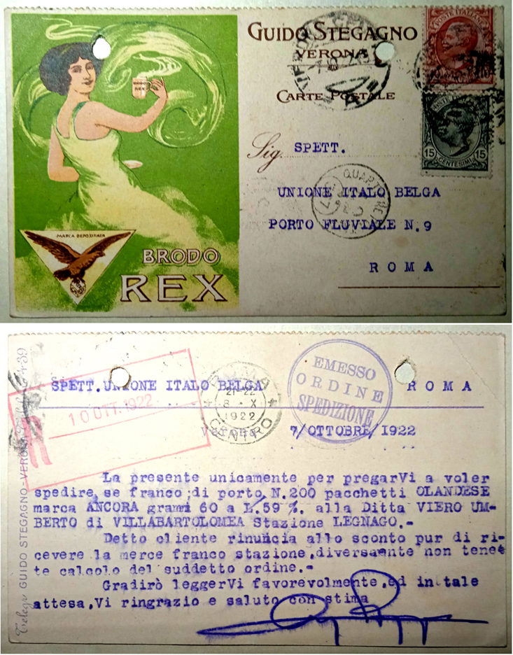 affrancata con francobolli da 10 e 15 centesimi, 8 ottobre 1922