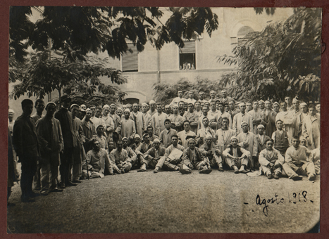9345 - OSPEDALE MILITARE «GOFFREDO MAMELI», Roma, agosto 1918, soldati feriti e personale sanitario